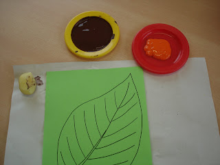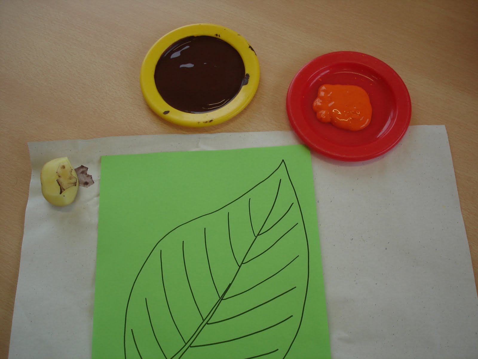 As Abelhinhas enfeitaram folhas de Outono com carimbos de batata.