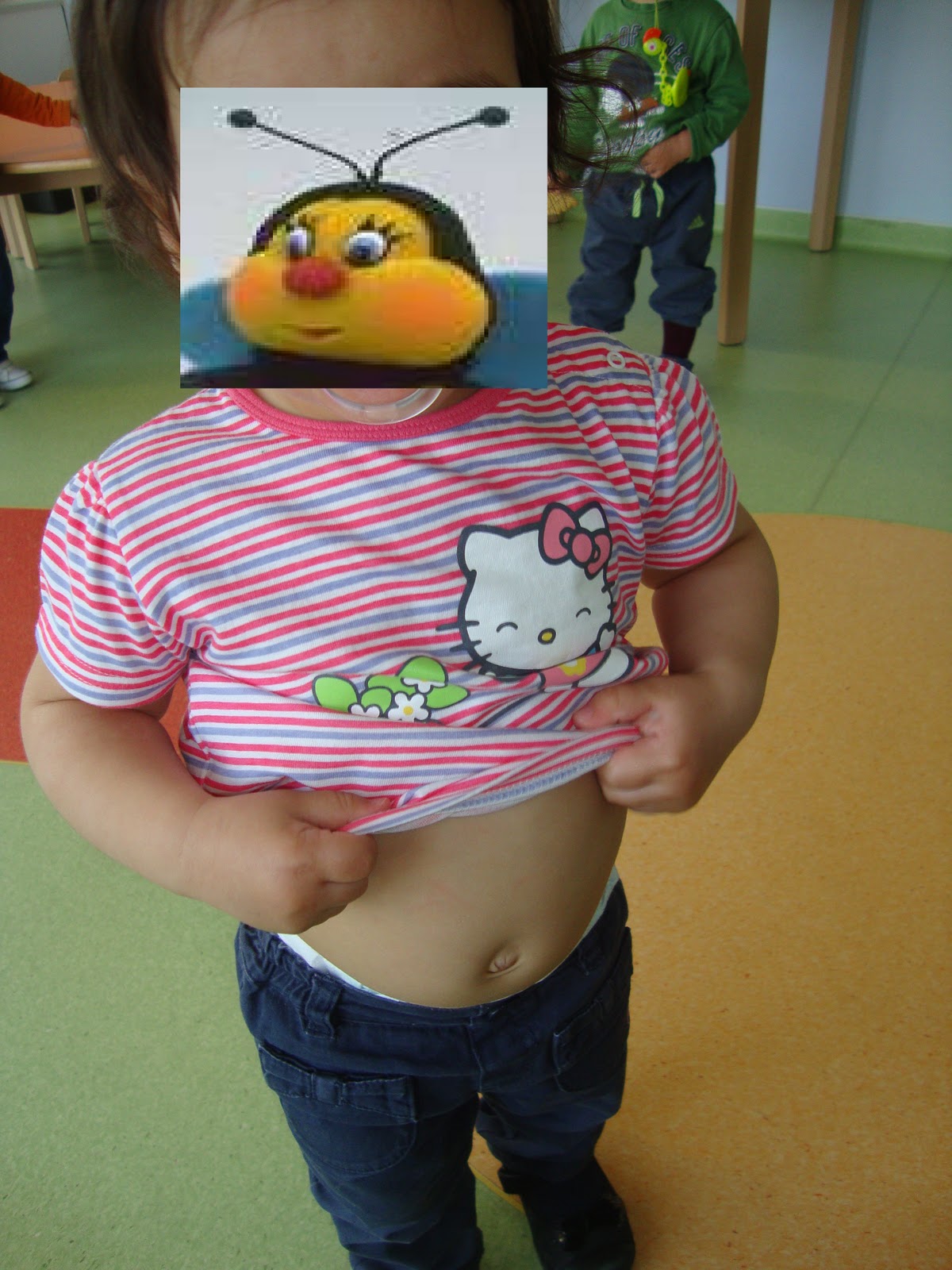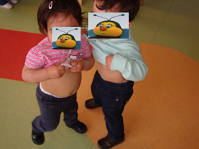 Como foi giro, pois as nossas abelhinhas descobriram que tinham uma barriguinha , e o melhor é que pudiam vê-la .......