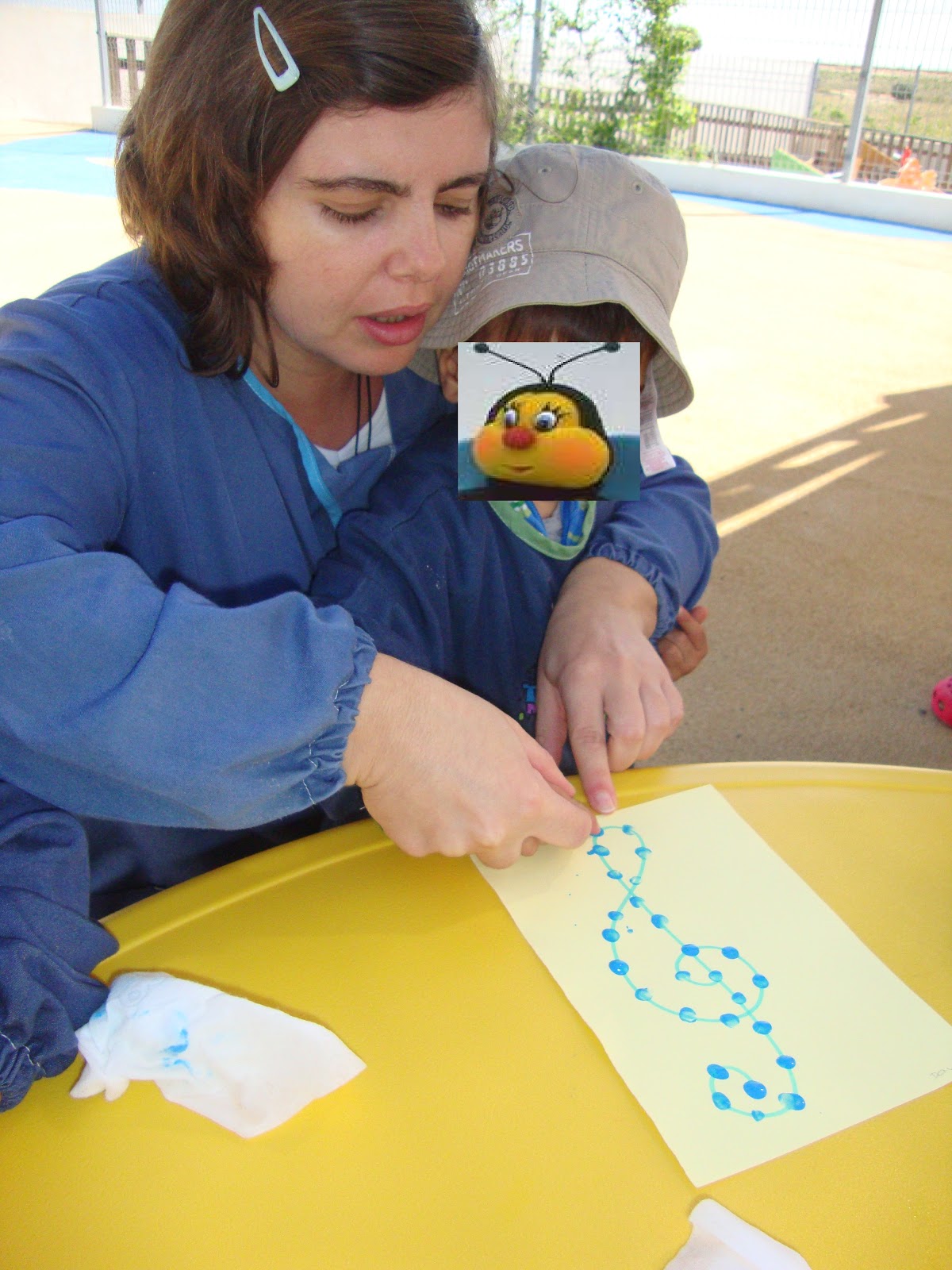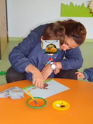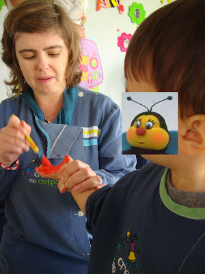Depois desenhámos um círculo para as Abelhinhas pintarem por dentro... |