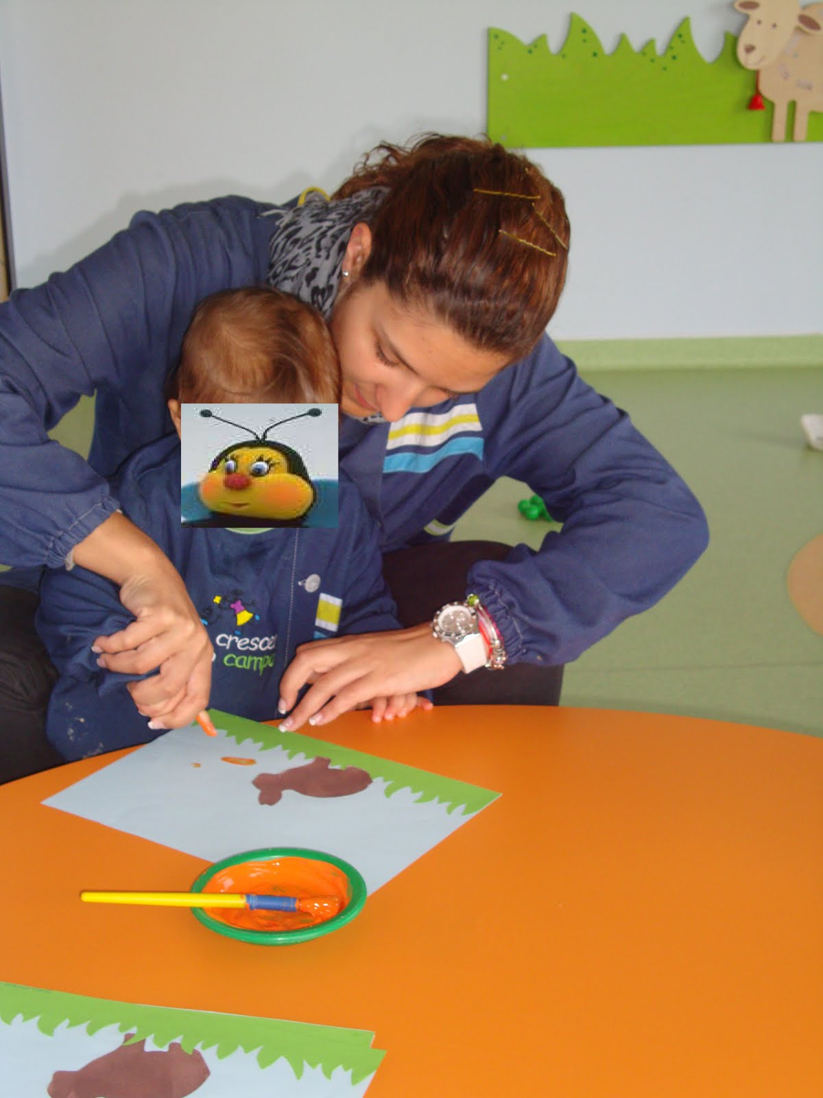 As abelhinhas mais velhas pintaram com lápis de cor e as mais novas pintaram com tintas.