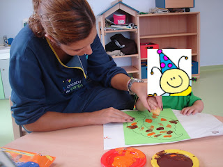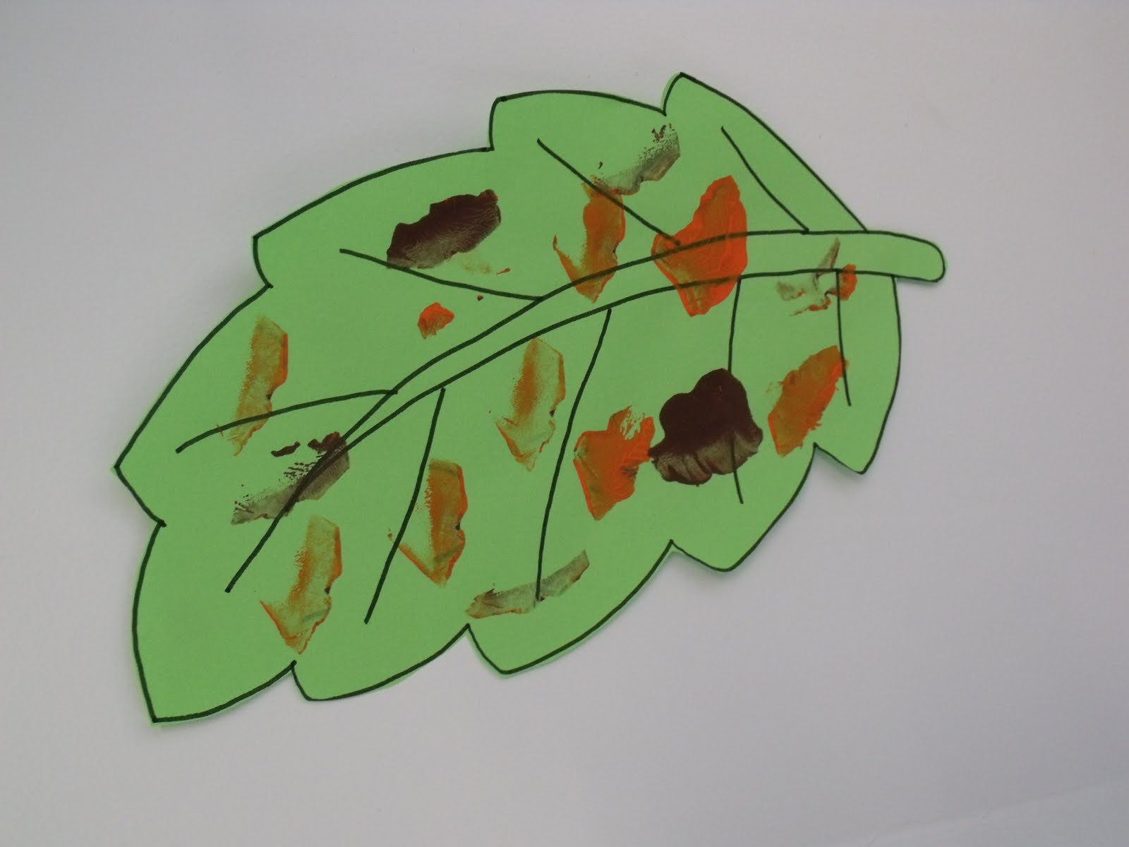 As Abelhinhas enfeitaram folhas de Outono com carimbos de batata.