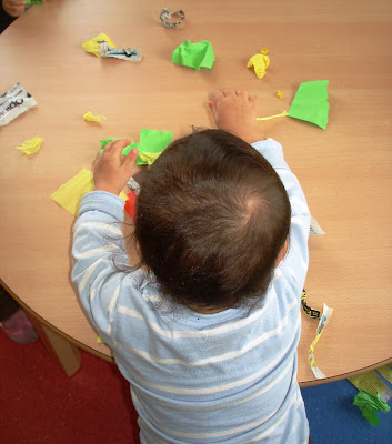 Para pintarmos os animais utilizámos diferentes técnicas de pintura: pintámos com os nossos dedos, jornal amachucado, papel crepe e tampas de garrafa. Além disso amachucámos e rasgámos diferentes tipos de papéis...(hihi adorámos espalhar os bocadinhos todos pelo chão da sala!!)