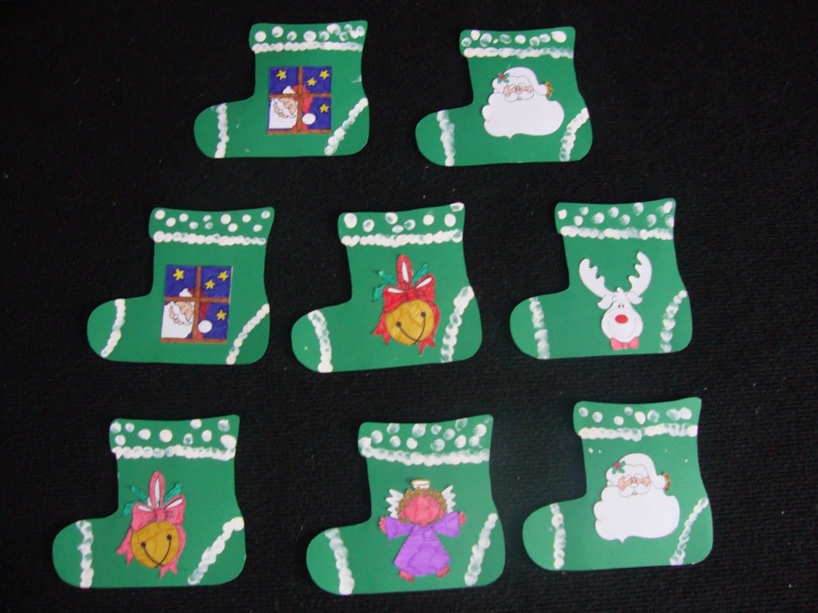 As nossas meias de Natal pintadas com os dedos e decoradas com desenhos alusivos ao natal :)
