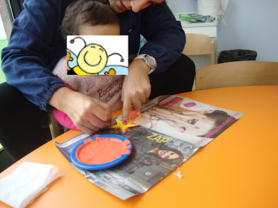Para fazermos as nossas estrelas cadentes pintámos com os pés e com as mãos!!