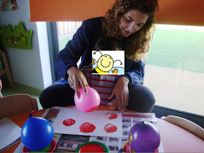 As abelhinhas adoram brincar com balões... Então porque não pintar com eles??