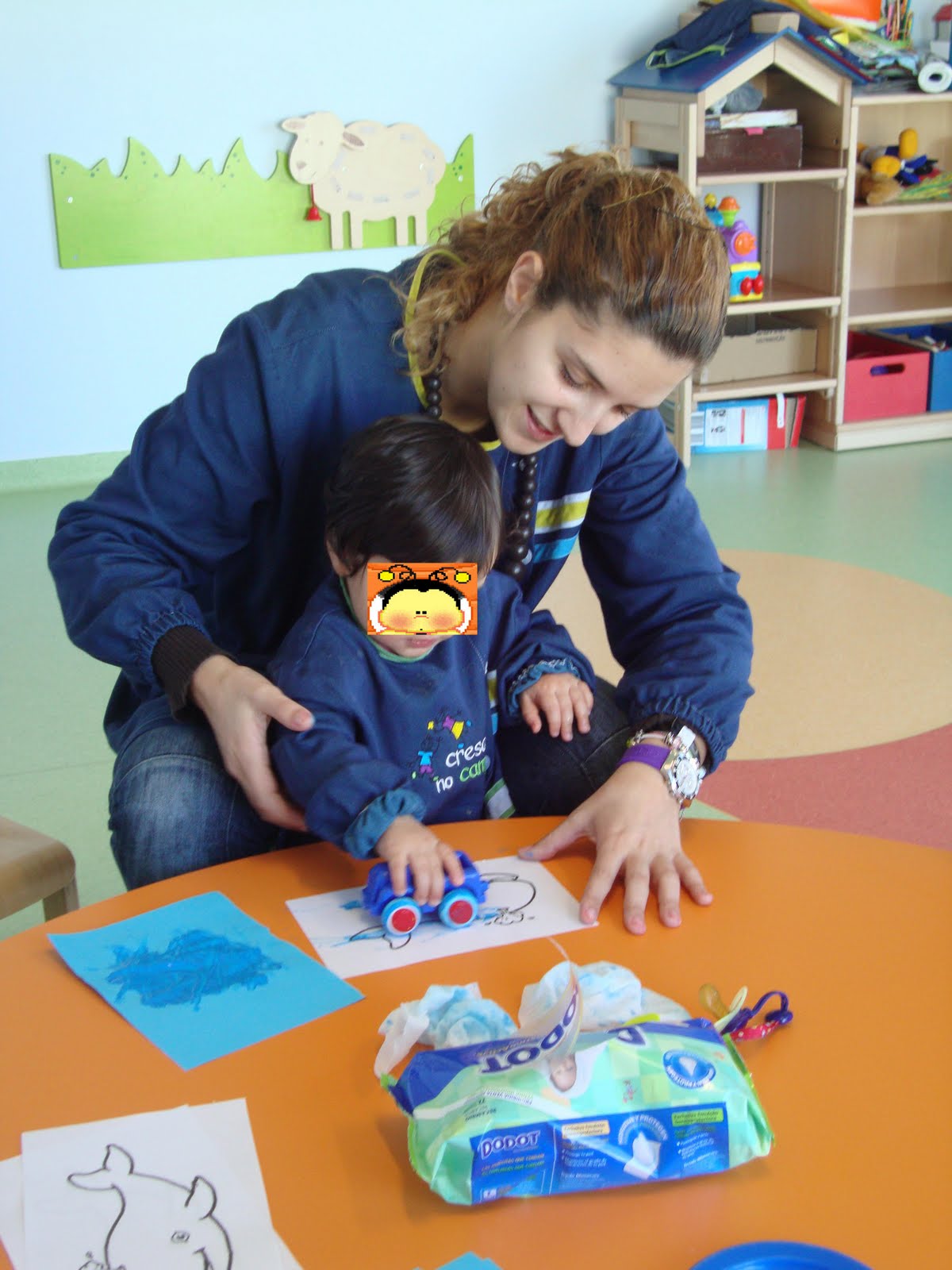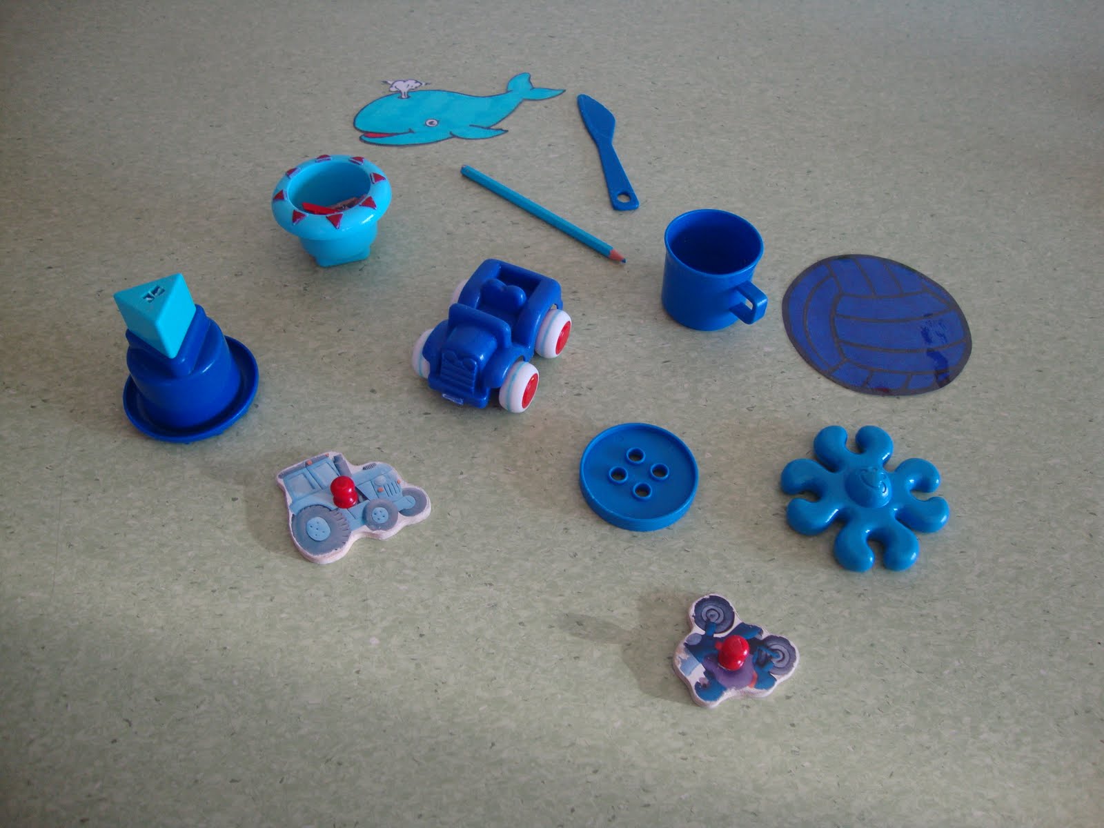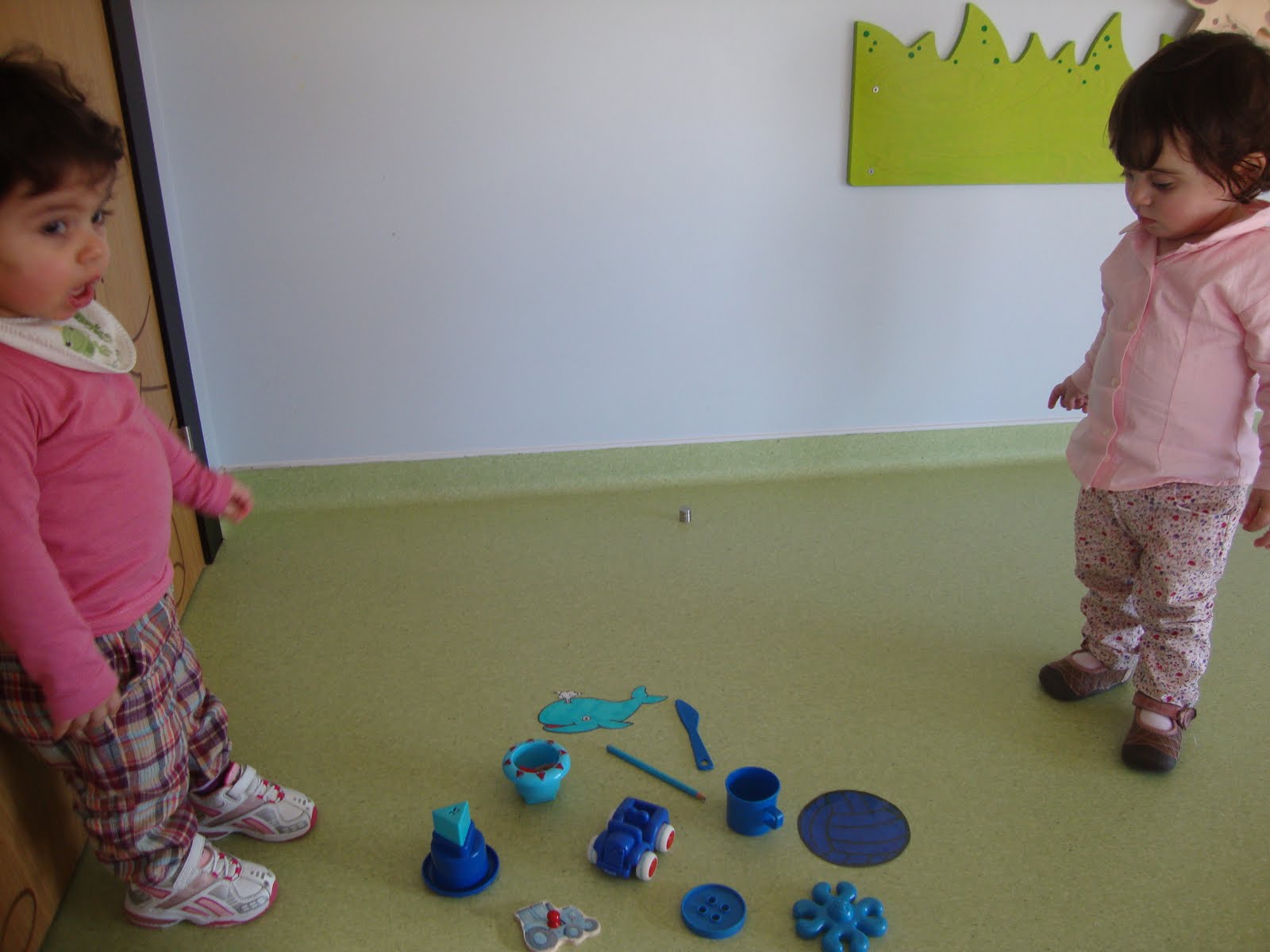 vimos os brinquedos que existem na nossa sala dessa cor e depois pintámos com um carrinho azul bolas e baleias.