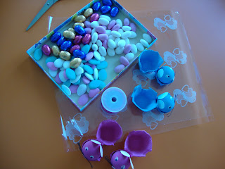 Ainda durante a semana passada as Abelhinhas realizaram a lembrança da Páscoa para dar aos papás. Esta prendinha foi feita com caixas de ovos, bolas de ping pong e cartolina.