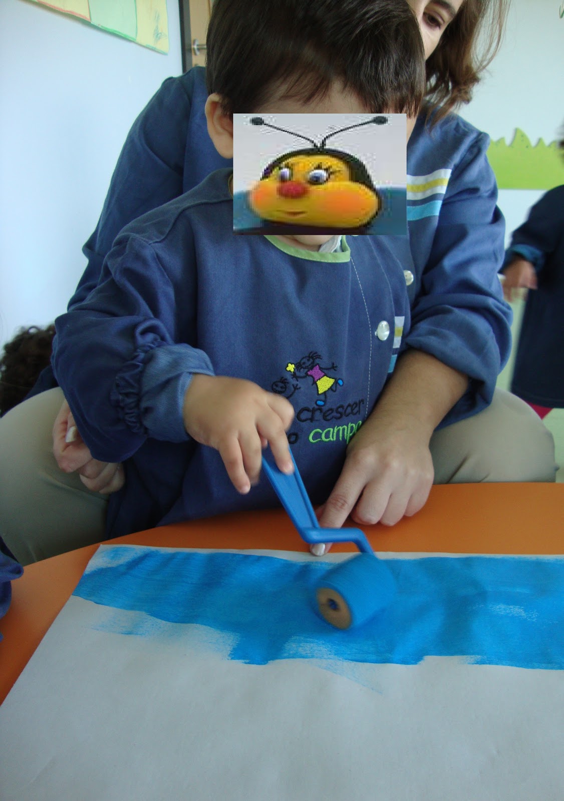 Para celebrar a chegada do Verão, as Abelhinhas fizeram uma pintura com rolos.